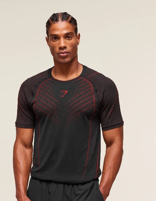 GS Playera stretch Apex Seamless T-Shirt negra-rojo