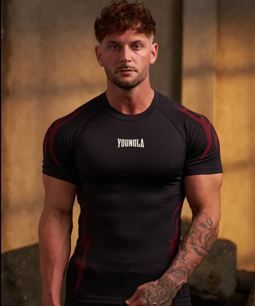 YOUNGLA 4067 - Gothic Compression Tees Negra con rojo